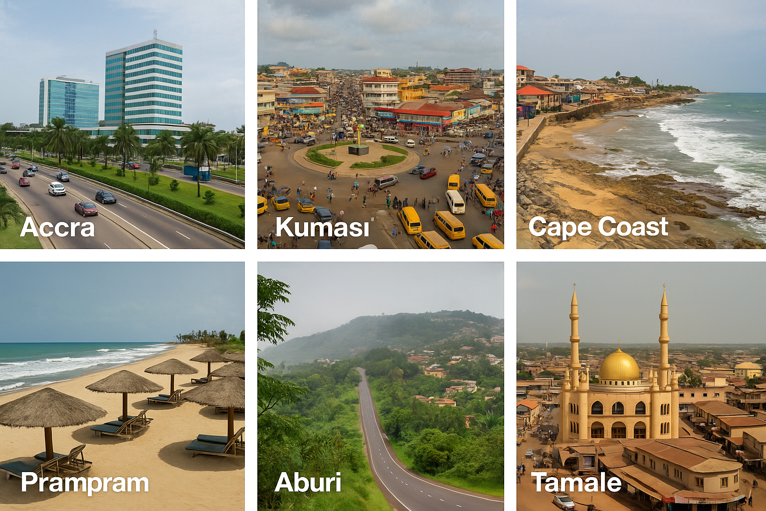 - Takoradi – Port city with growing oil & gas-related infrastructure